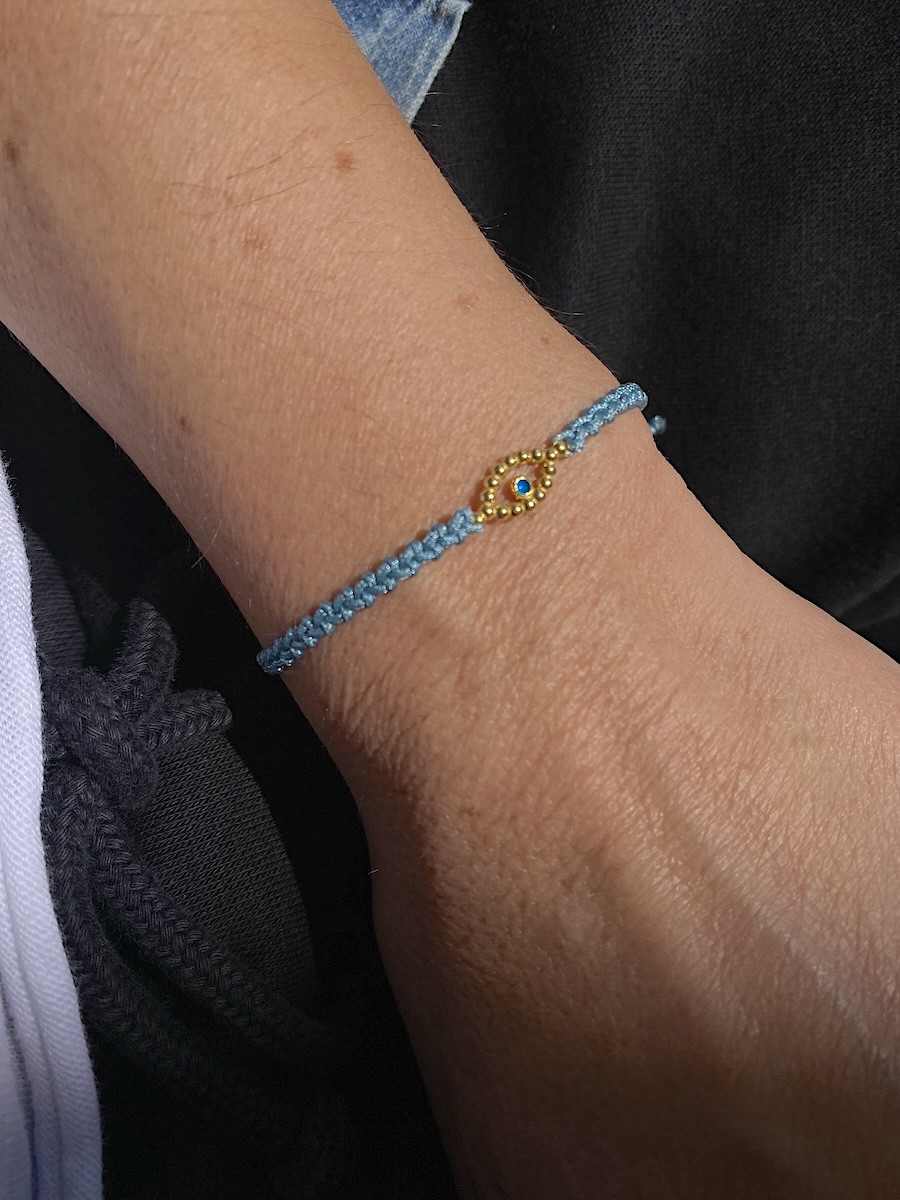 Evil Eye Cord Bracelet, handmade in Greece Sustainable Jewelry, Silver 925, Gold Plated