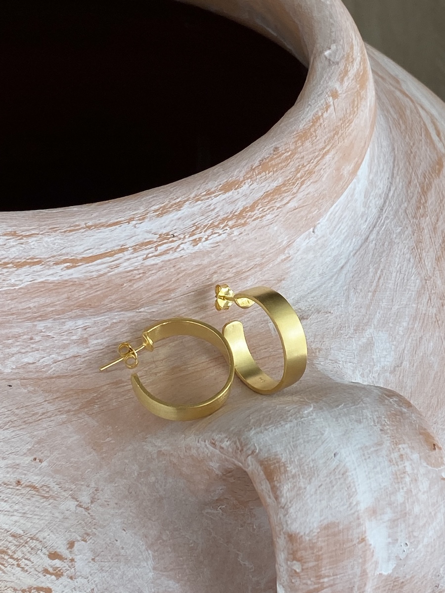 These gold plated hoop earrings are designed with a soft matte finish that gives them a modern yet elegant look.